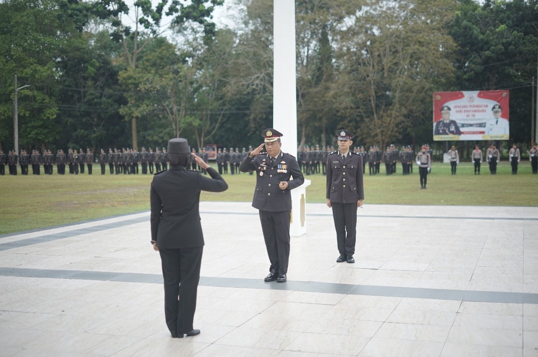 Upacara ini dipimpin langsung oleh Kapolres Bangka Tengah, AKBP Dwi Budi Murtiono, dihadiri oleh Bupati Bangka Tengah, Algafry Rahman bersama Forkopimda, Kepala OPD, para pejabat utama Polres Bangka Tengah, serta seluruh personel dan tamu undangan lainnya.