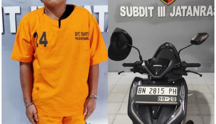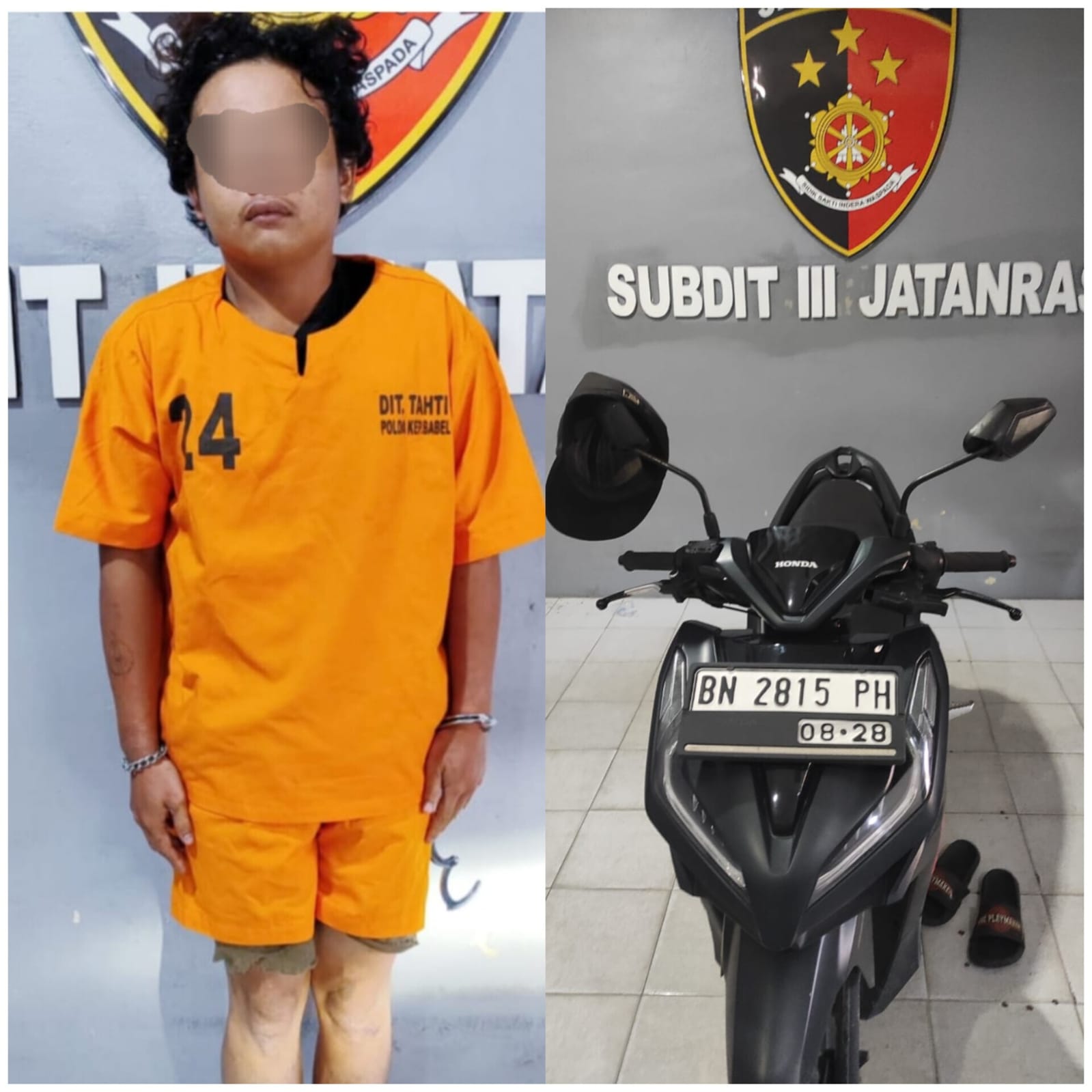 TerabasNews – Seorang pemuda asal Pangkalpinang berinisial MHI alias Kim Kim (19) diciduk Tim 2 Opsnal Subdit III Jatanras Dit Reskrimum Polda Bangka Belitung. Ia ditangkap usai mencuri sepeda motor dikawasan Taman Dealova Kelurahan Kacang Pedang Kecamatan Gerunggang Kota Pangkalpinang.