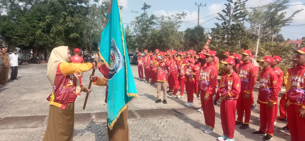 TerabasNews, Bangka Selatan- Dinas Pariwisata kepemudaan dan olahraga kabupaten Bangka Selatan, Gelar Pelepasan kontingen, Pekan olahraga Pelajar Daerah (Popda) 12, Ke tingkat Provinsi Kepulauan Bangka Belitung Tahun 2024.