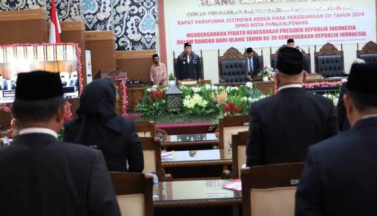 TerabasNews,PANGKALPINANG – Penjabat Wali Kota Pangkalpinang, Budi Utama menghadiri Rapat Paripurna Istimewa kedua masa persidangan III tahun 2024 DPRD Kota Pangkalpinang dalam rangka mendengarkan pidato kenegaraan Presiden RI pada momentum HUT RI Ke-79 tahun 2024 di Ruang Sidang Paripurna DPRD Pangkalpinang, Jumat (16/8/2024).