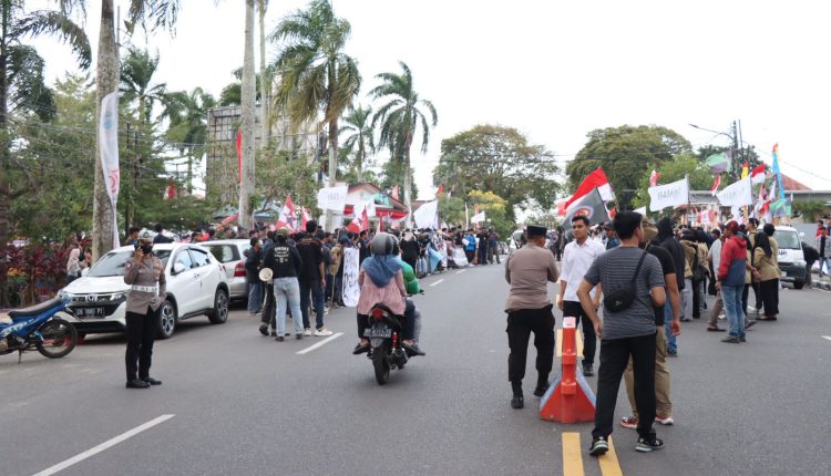 Ratusan Personel Polresta Pangkalpinang Amankan Aksi Kawal Putusan MK Di Titik Nol Kilometer Pangkalpinang