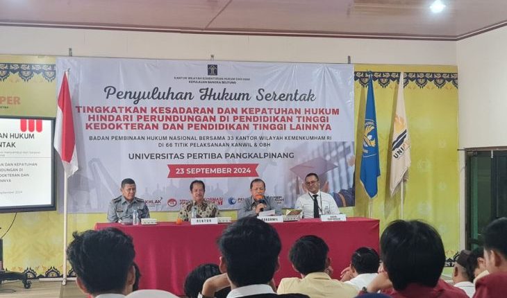 TerabasNews, Pangkalpinang – Untuk menghindari perundungan di perguruan Tinggi, Kantor Wilayah Kementerian Hukum dan HAM Kepulauan Bangka Belitung menggelar Penyuluhan Hukum di Universitas Pertiba, Senin (23/09/2024).