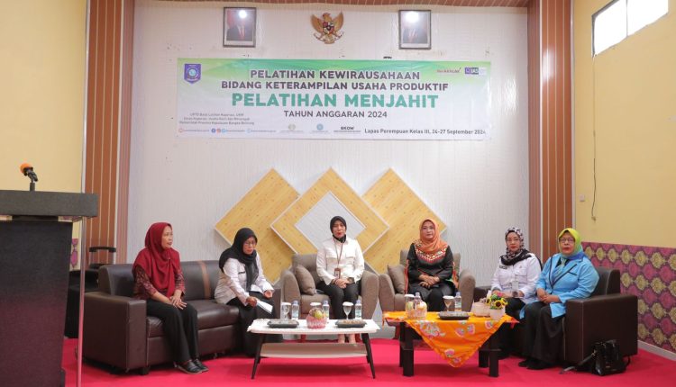 TerabasNews, PANGKALPINANG – Pada Pembukaan Pelatihan Kewirausahaan Bidang Keterampilan Usaha Produktif/Pelatihan Menjahit Tahun 2024, Penjabat Ketua Tim Penggerak Pemberdayaan dan Kesejahteraan Keluarga (TP PKK) Provinsi Kepulauan Bangka Belitung Dya Sugito menyerahkan 3 mesin jahit, 1 mesin obras beserta aksesorisnya di Lapas Perempuan Kelas III Pangkalpinang (25/9/2024).