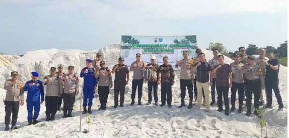 TerabasNews,bKoba – Kepolisian Resor (Polres) Bangka Tengah bersinergi bersama Pemerintah Kabupaten Bangka Tengah (Pemkab Bateng) melaksanakan penanaman bibit pohon, di sekitaran wilayah eks tambang, Kelurahan Padang Mulia, Kamis (17/10/2024).