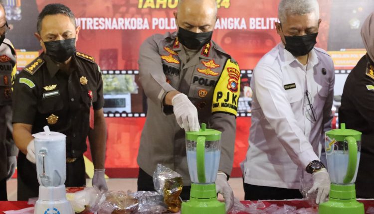 Pemusnahan barang bukti narkotika jenis sabu dan ganja dipimpin langsung oleh Kapolda Babel Irjen Pol Hendro Pandowo dengan cara dibelender dan dibakar.