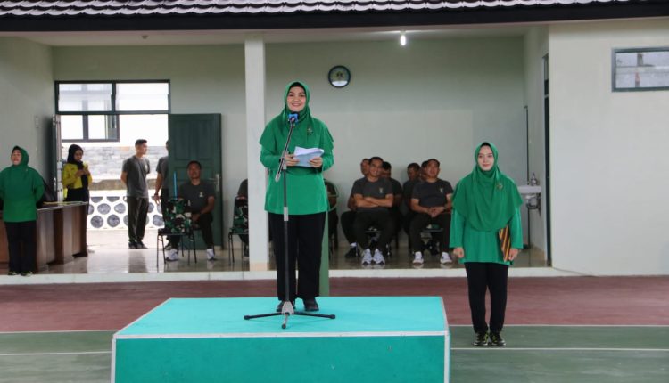 Sambutan Ibu ketua Persit KCK Koorcabrem 045 PD II/Swj Ny Mona Safta Feryansyah menyampaikan