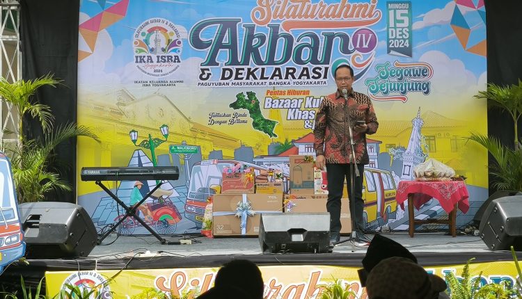 TerabasNews, YOGYAKARTA – Penjabat (Pj) Gubernur Kepulauan Bangka Belitung (Kep. Babel) Sugito, berkesempatan hadir dalam acara Halal Bihalal dan Silaturahmi Nasional Alumni Ikatan Pelajar Mahasiswa Bangka (ISBA) Yogyakarta ke-IV Tahun 2024, sekaligus Deklarasi Paguyuban Masyarakat Bangka Yogyakarta di Asrama Putra ISBA Yogyakarta, Minggu (15/12/2024).