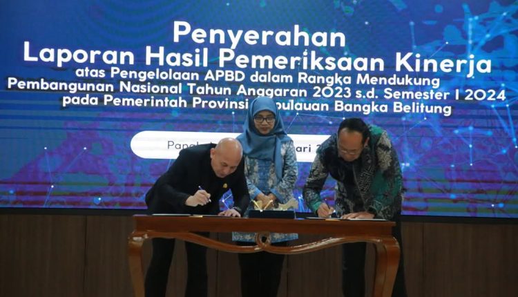 TerabasNews, PANGKALPINANG – Ketua DPRD Provinsi Kepulauan Bangka Belitung (Babel) Didit Srigusjaya menghadiri acara penyerahan Laporan Hasil Pemeriksaan (LHP) Kinerja atas Pengelolaan Anggaran Pendapatan dan Belanja Daerah (APBD) Tahun Anggaran 2023 hingga Semester I Tahun 2024. Acara ini berlangsung di Kantor Badan Pemeriksa Keuangan (BPK) Perwakilan Babel, (9/1/2025).