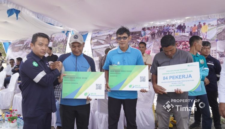 Bantuan BPJS Ketenagakerjaan ini diserahkan secara simbolis oleh Direktur Utam PT Timah Ahmad Dani Virsal dan Pj Gubernur Babel Sugito dalam kegiatan panen bawang di Danau Nujau, Dusun Gangse, Kabupaten Belitung Timur, Sabtu (8/2/2025).