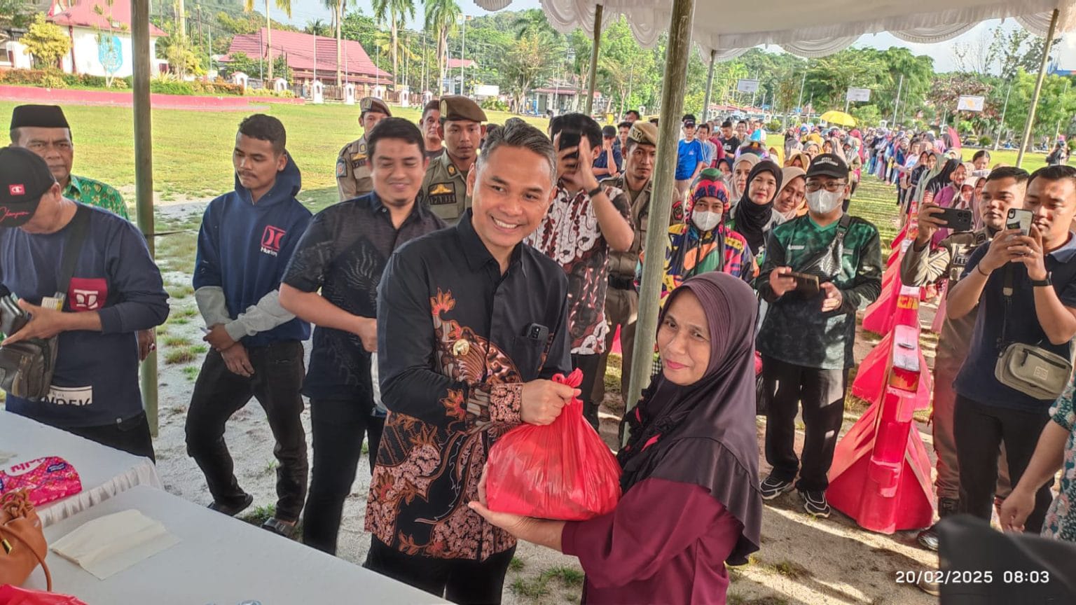 Terpantau masyarakat mulai mengantri dan satu persatu membeli paket dengan kupon yang sudah dibagikan oleh penyelenggara. (Yanto/ADV)