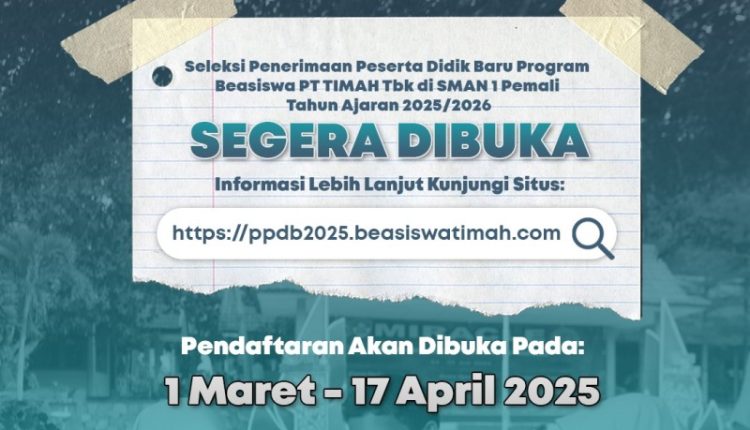 TerabasNews, PANGKALPINANG — PT Timah kembali membuka pendaftaran program Kelas Beasiswa PT Timah pada SMAN 1 Pemali Tahun Ajaran 2025/2026.