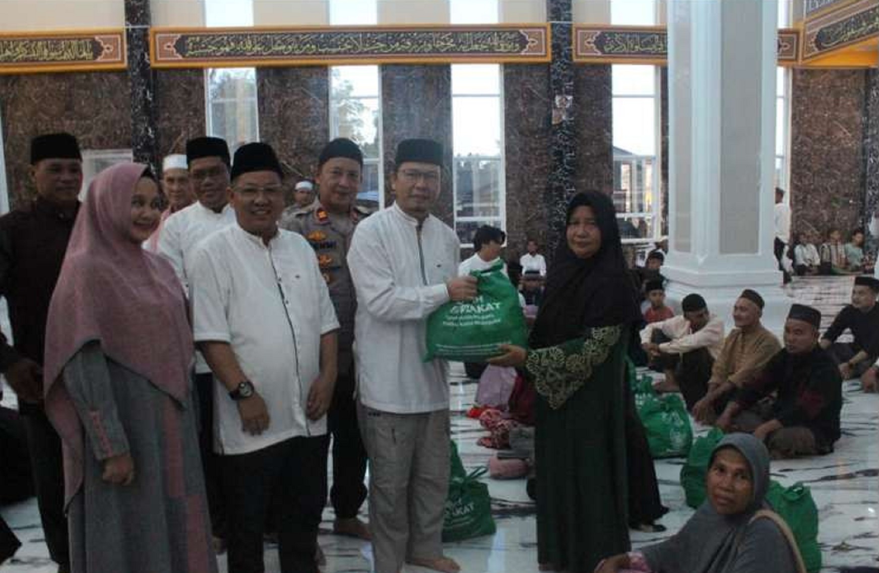 Kesempatan ini juga dimanfaatkan oleh Bupati dan Wakil Bupati untuk menyerahkan santunan kepada 15 anak yatim. Selain santunan, Algafry juga menyerahkan 1 buah sound portable kepada Masjid Al-marhamah Desa Terak.