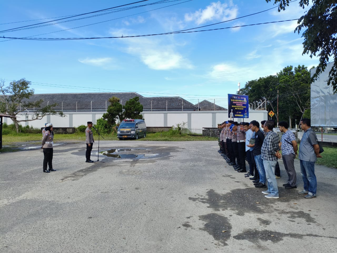 Sebanyak 40 personel dikerahkan sesuai Surat Perintah (Sprin), dengan pengamanan dimulai sejak pukul 09.30 WIB melalui apel pengecekan yang dipimpin langsung oleh Propam Polres Bangka Barat. Seluruh kegiatan berlangsung dengan tertib dan kondusif.