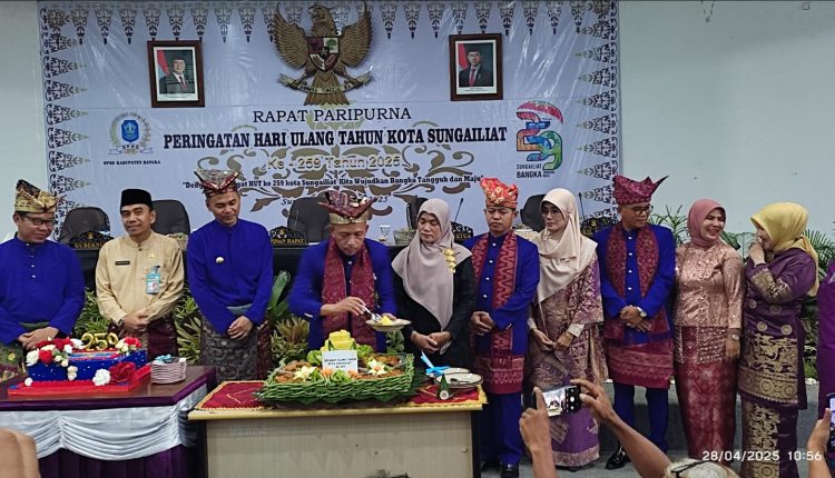 TerabasNews – DPRD Kabupaten Bangka Kamis (28/04/2025), menggelar rapat paripurna dalam rangka memperingati Hari Ulang Tahun Kota Sungailiat yang ke 259 , rapat dipimpin langsung oleh ketua DPRD Jumadi,S.IP dan dihadiri oleh Asisten Administrasi Umum Pemerintah Provinsi Kepualuan Bangka Belitung Bapak Drs. Yunan Helmi ,M.Si, Bapak Pj.Bupati Bangka Isnaini, S.Tr., S.H., M.M, wakil ketua I DPRD Hendra Yunus,SE, Wakil Ketua II M.Taufik Koriyanto,SH,MH, segenap FORKOPIMDA , Kepala Dinas,kantor, Camat, Lurah, Darma Wanita dan Insan Pers serta para undangan lainnya.