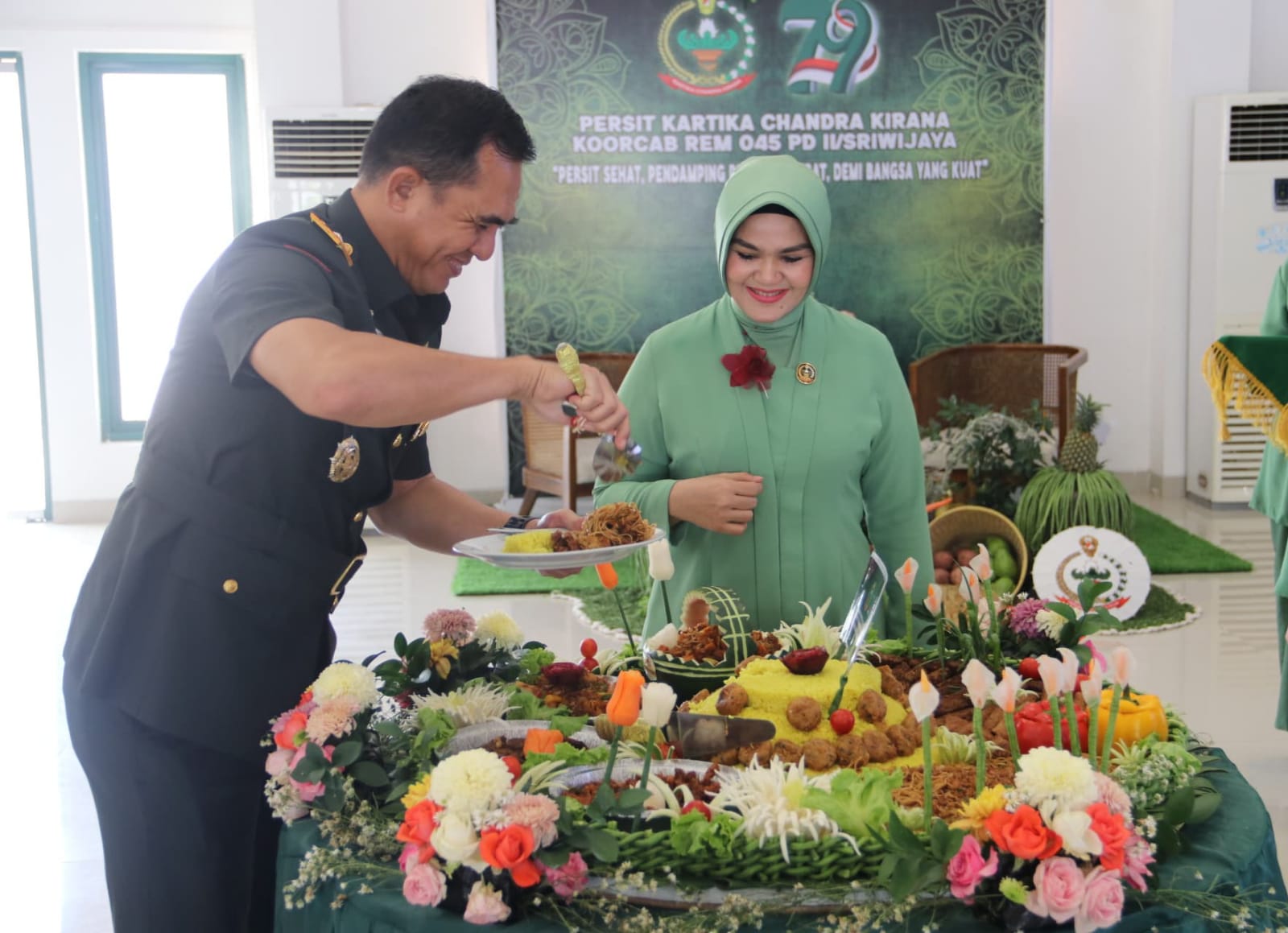 Sambutan Pembina Persit KCK Koorcab Rem 045 PD ll/Swj, Danrem 045/Gaya Brigjen TNI Safta Feryansyah S.E.,S.I.P.,M.Han., saya ucapkan selamat ulang tahun, semoga di usianya yang ke-79 peran persit semakin meningkat baik untuk keluarga, organisasi maupun masyarakat.