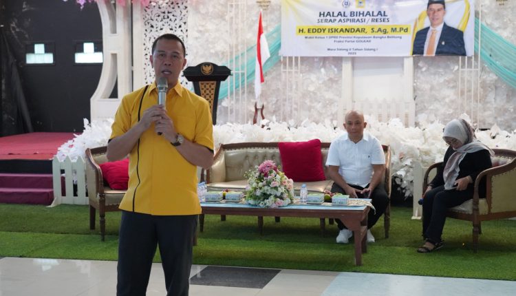 TerabasNews, PANGKALPINANG – Wakil Ketua DPRD Provinsi Kepulauan Bangka Belitung Eddy Iskandar menggelar kegiatan reses yang dirangkaikan dengan acara halal bihalal bersama masyarakat Kecamatan Rangkui, Minggu pagi (18/5). Kegiatan tersebut berlangsung di Gedung Cendana Pangkalpinang, dan dihadiri oleh berbagai elemen masyarakat, tokoh agama, tokoh pemuda, serta ibu-ibu majelis taklim.