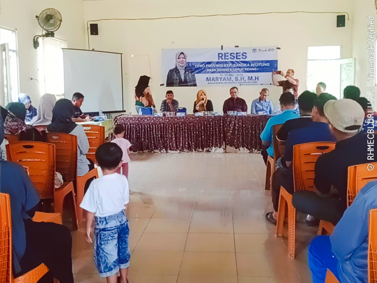 TerabasNews, Merawang – Anggota DPRD Provinsi Kepulauan Bangka Belitung, Maryam, melaksanakan kegiatan reses ke Desa Jade Bahrin, Kabupaten Bangka pada sabtu (17/5). Acara yang digelar di Kantor Desa Jade Bahrin ini turut dihadiri oleh warga, para nelayan, serta perwakilan dari Dinas Pendidikan, Kesra, dan Bappeda.