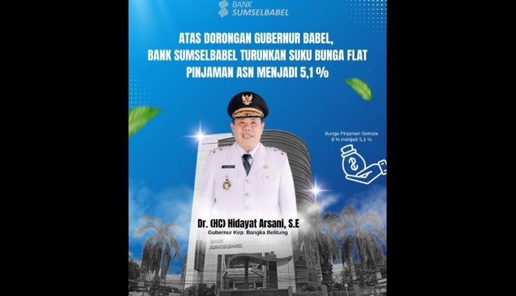 Sebagai bentuk kepedulian terhadap kesejahteraan Aparatur Sipil Negara (ASN), Bank Sumsel Babel Cabang Pangkalpinang resmi menurunkan suku bunga flat pinjaman khusus ASN dari sebelumnya 8% menjadi hanya 5,1%. Kebijakan ini dijalankan atas dorongan langsung dari Gubernur Kepulauan Bangka Belitung, sebagai langkah konkret meringankan beban pembiayaan para pegawai negeri sipil di lingkungan pemerintah provinsi maupun kabupaten/kota.