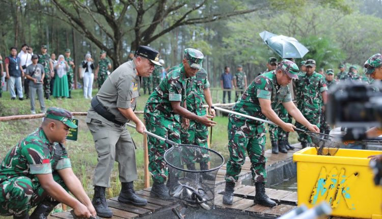 Diawali dengan penebaran bibit dan panen ikan di lahan Ketahanan Pangan Terpadu Kodim 0413, pada rangkaian kegiatan ini juga dilakukan pembagian 500 paket sembako kepada masyarakat penerima manfaat.
