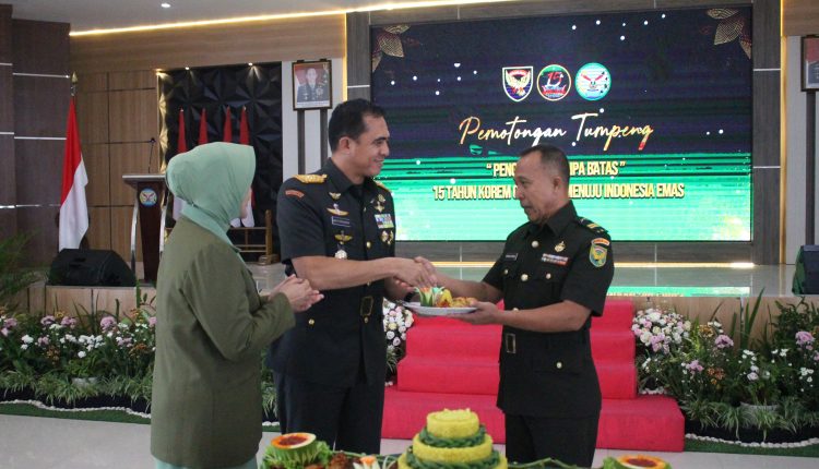 TerabasNews, Pangkalpinang – Korem 045/Garuda Jaya menggelar syukuran menandai puncak peringatan Hari Jadinya ke -15 Korem 045/Gaya dengan tema “Pengabdian Tanpa Batas” 15 Tahun Korem 045/Garuda Jaya Menuju Indonesia Emas, tempat di Aula Makorem 045/Gaya, Senin (16/06/2025).