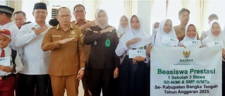 “Alhamdulillah, beberapa hari lalu Baznas Bangka Tengah sudah menyalurkan beasiswa kepada 417 siswa SD dan SMP, yang mana untuk siswa SD-MI sederajat mendapat bantuan sebesar Rp 750.000,00 per siswanya , sedangkan siswa SMP-MTs sederajat sebesar Rp 1.000.000,00, ujar Bupati Bangka Tengah Algafry Rahman, Senin 23/6/25.