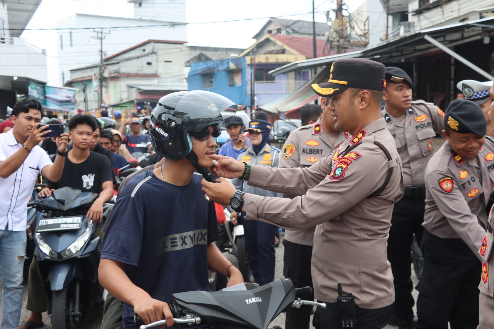 Warga yang tengah beraktivitas di sekitar pasar pun tampak antusias menerima helm dan snack gratis dari jajaran Forkopimda. Momen ini menjadi bukti kehadiran nyata Polri yang lebih humanis dan peduli terhadap keselamatan masyarakat.