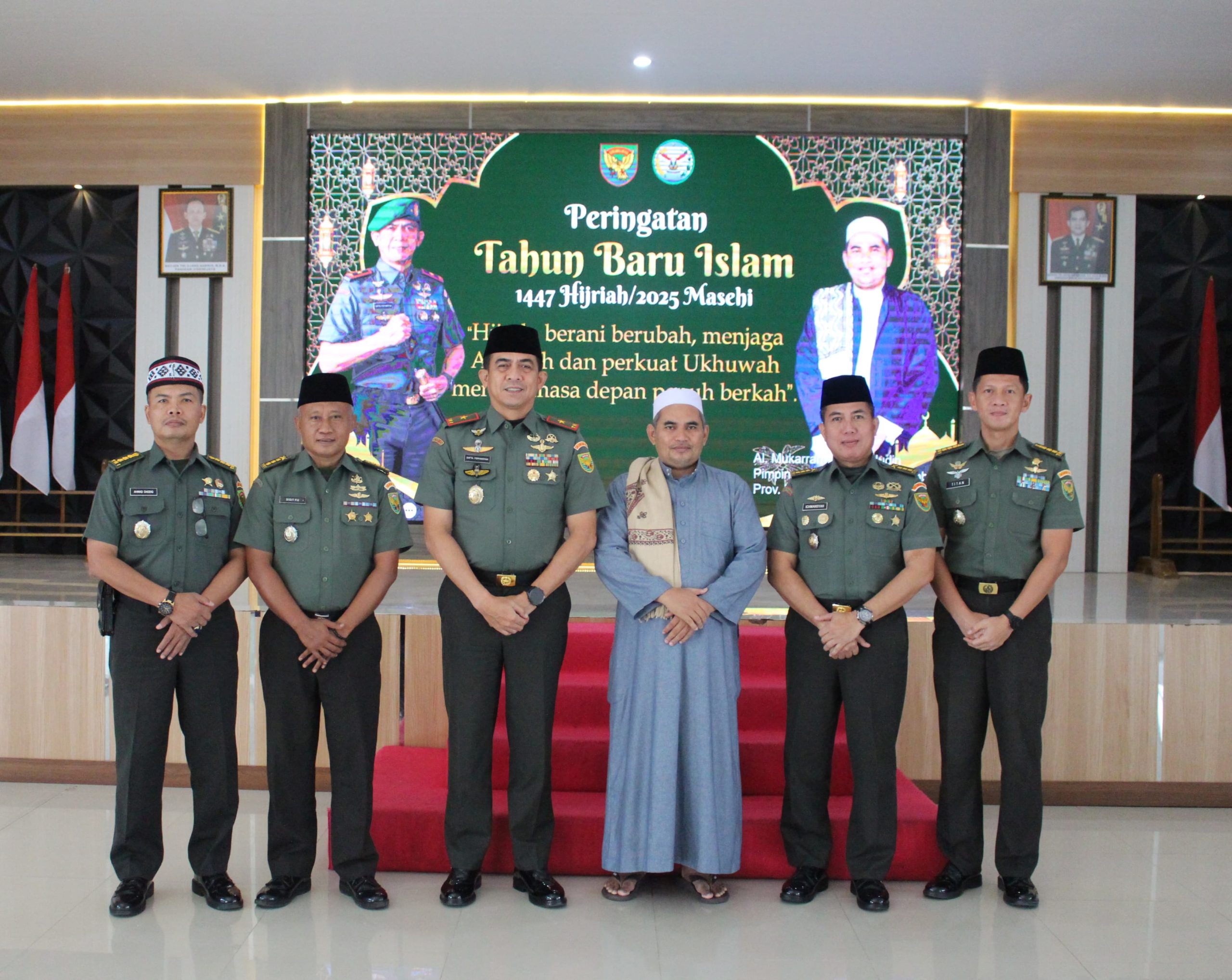 Keluarga besar Korem 045/Gaya dan Satbalak jajaran Korem 045/Gaya memperingati 1 Muharram 1447H dengan tema “Hijrah, Berani Berubah, Menjaga Amanah dan Perkuat Ukhuwah Menuju Masa Depan Penuh Berkah”