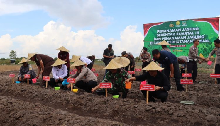 TerabasNews, Bangka Selatan – Dalam rangka mendukung swasembada pangan tahun 2025, Kepolisian Resor Polres Bangka Selatan menggelar penanaman jagung serentak kuartal lll Tahun 2025 di atas lahan perhutanan sosial.