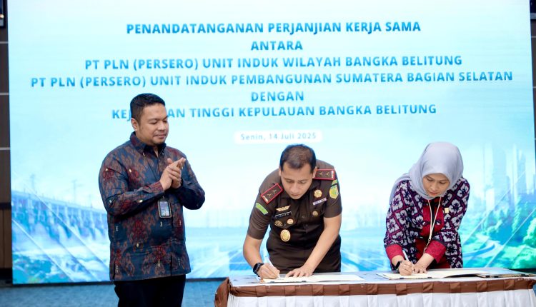 TerabasNews, Pangkalpinang, 14 Juli 2025 — PT PLN (Persero) menjalin sinergi strategis bersama Kejaksaan Tinggi Kepulauan Bangka Belitung dalam penguatan aspek hukum pembangunan infrastruktur ketenagalistrikan. Melalui penandatanganan Perjanjian Kerja Sama (PKS) antara PLN Unit Induk Wilayah (UIW) Bangka Belitung dan Unit Induk Pembangunan Sumatera Bagian Selatan (UIP Sumbagsel) dengan Kejati Babel, kerja sama ini menjadi kelanjutan dari Nota Kesepahaman antara PLN dan Kejaksaan Agung RI.