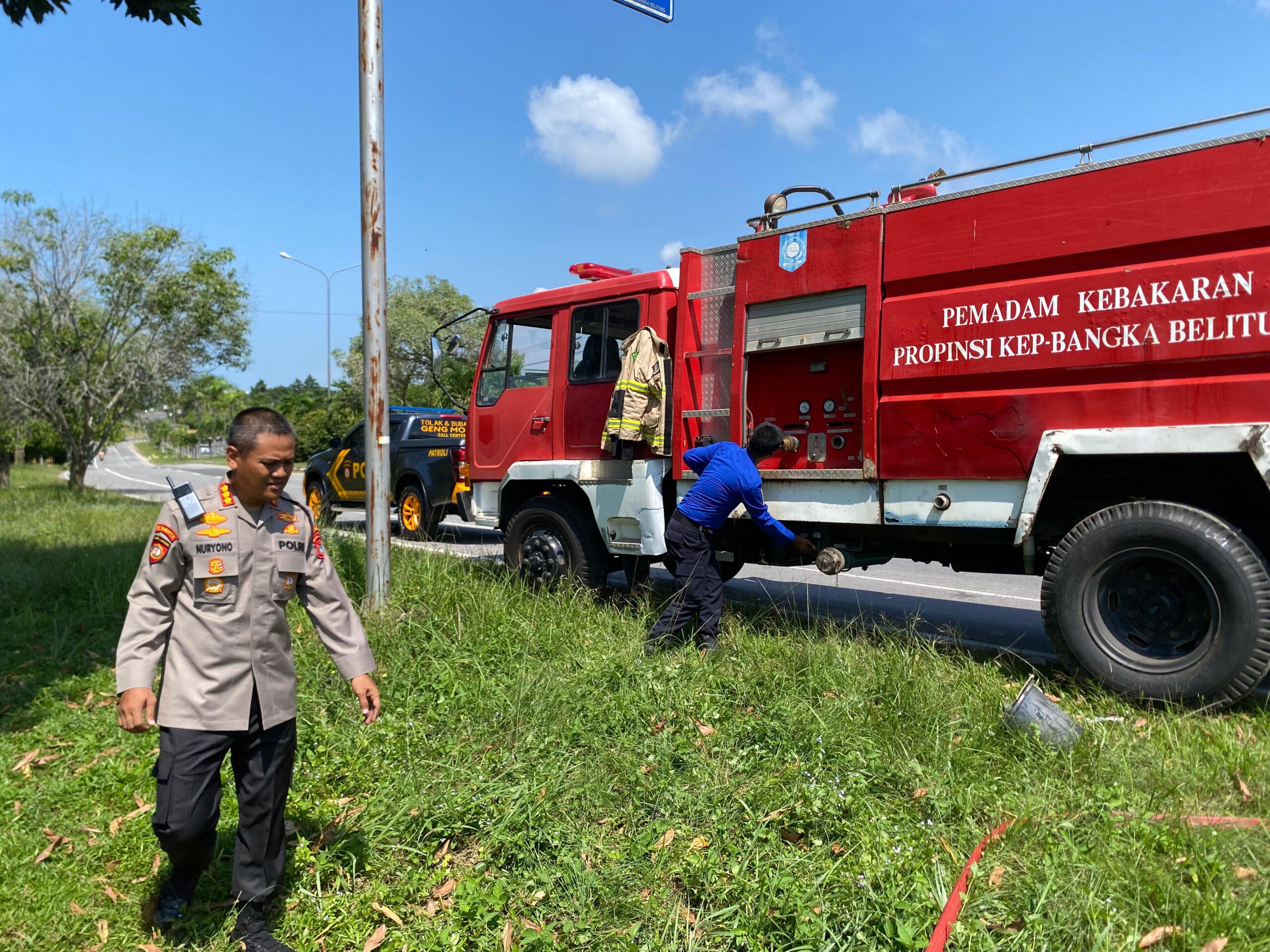 Polda Babel Dan Damkar Gerak Cepat Padamkan Karhutla Di Jalur Perkantoran Gubernur
