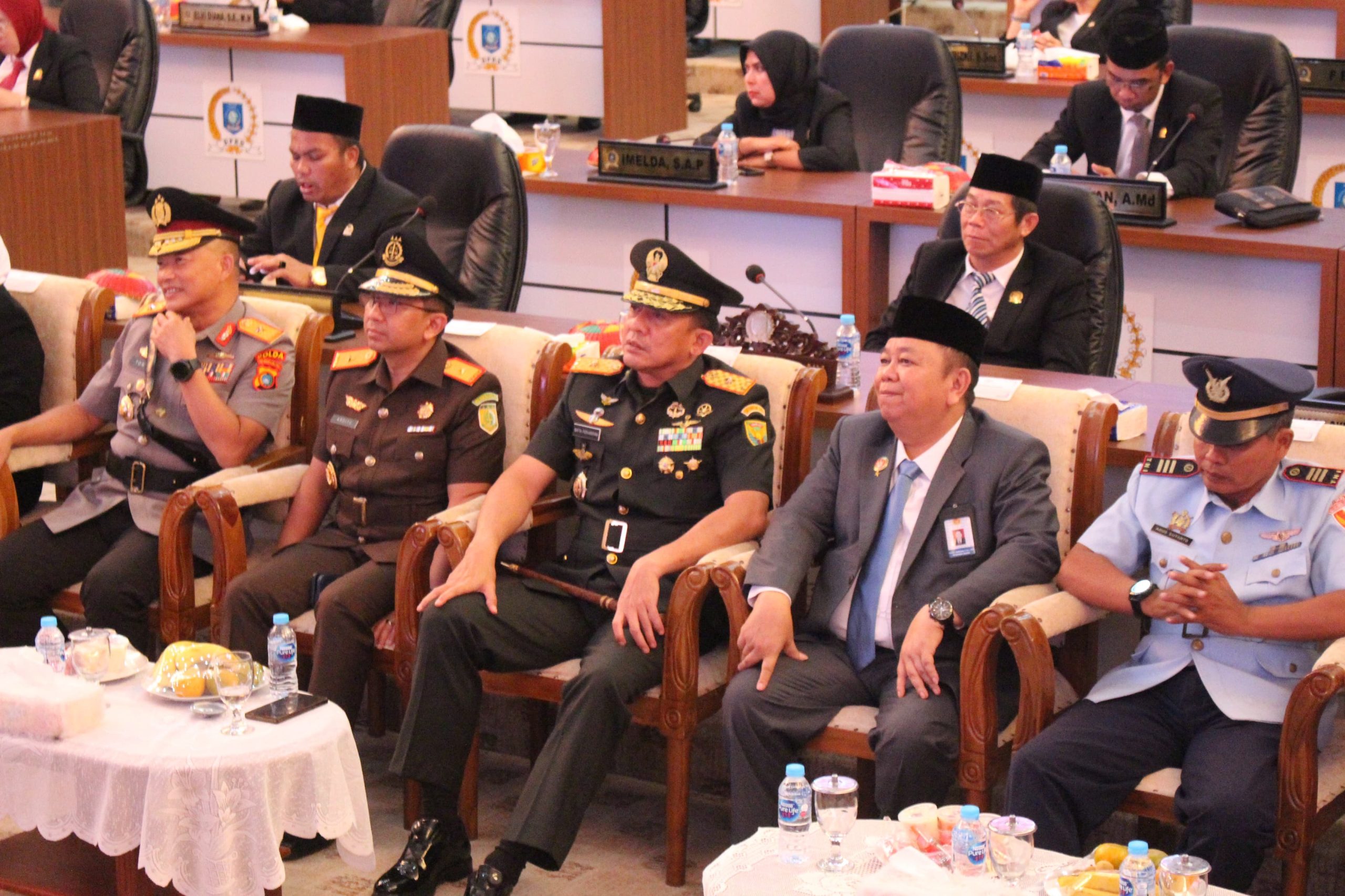 TerabasNews Pangkalpinang – Danrem 045/Gaya Brigjen TNI Safta Feryansyah S.E.,S.I.P.,M.Han menghadiri acara Rapat Paripurna DPRD Provinsi Bangka Belitung bertempat di ruang rapat Paripurna DPRD Provinsi Kepulauan Bangka Belitung, Kelurahan Air Itam Pangkalpinang, Jumat (15/08/2025).