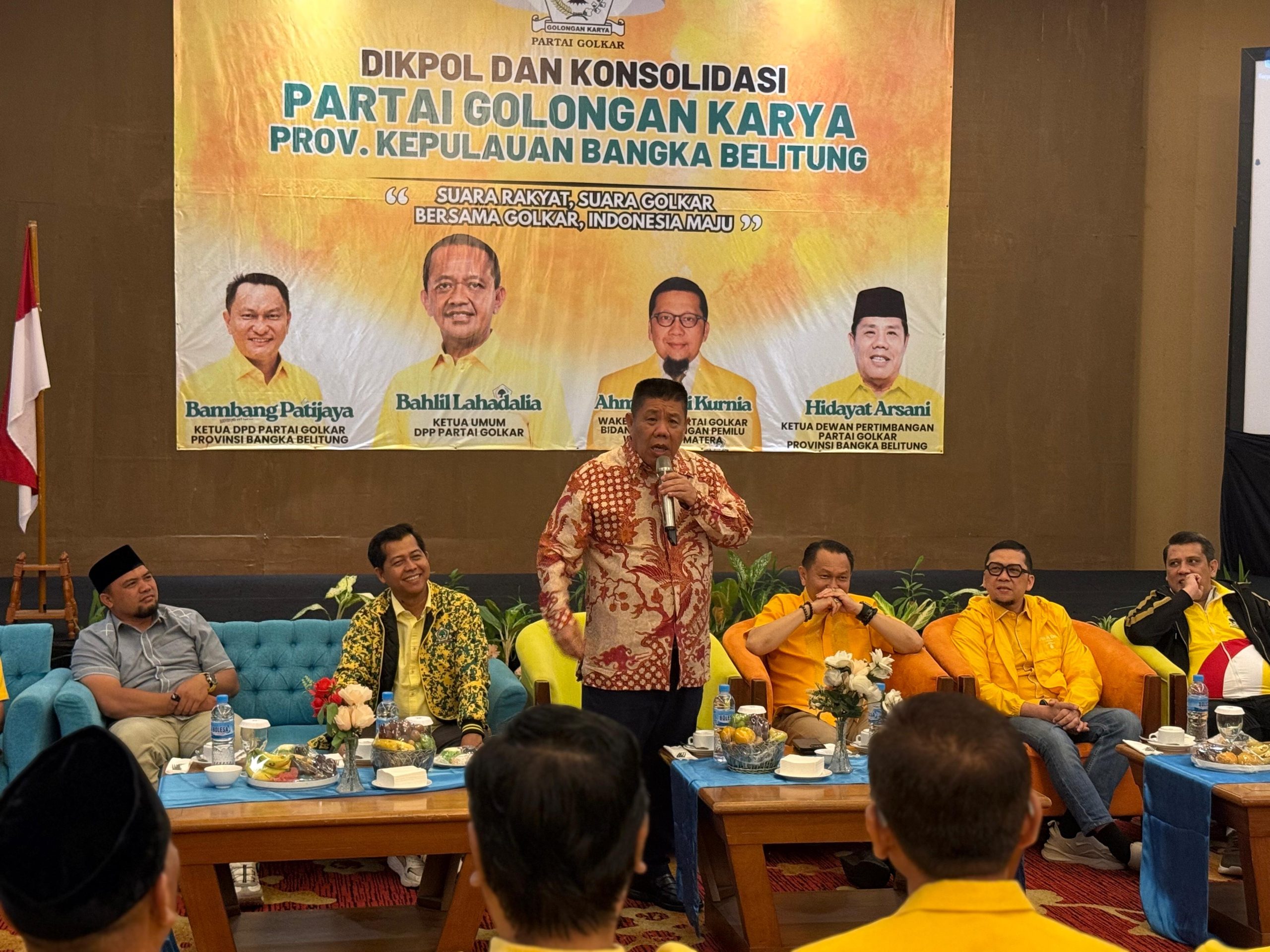 Acara Pendidikan Politik dan Konsolidasi Partai Golkar yang berlangsung di Ballroom Swiss-belhotel Pangkalpinang ini, dihadiri oleh ratusan kader beringin.