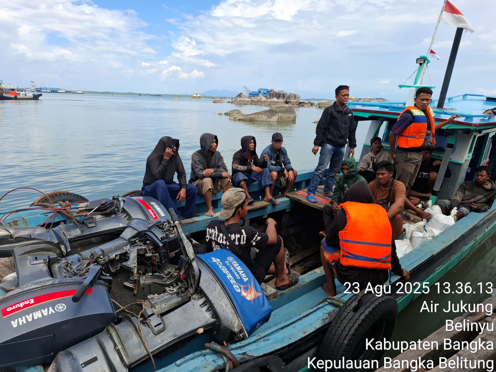 Delapan ponton tersebut ditarik ke Pelabuhan Mantung Belinyu untuk proses lebih lanjut.