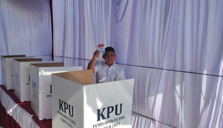TerabasNews, Pangkalpinang — Calon Wali Kota Pangkalpinang, Maulan Aklil (Molen), menunaikan hak pilihnya pada Pemilihan Kepala Daerah (Pilkada) Ulang 2025 dengan mencoblos di Tempat Pemungutan Suara (TPS) 5, Kelurahan Selindung, Kecamatan Gabek, Rabu pagi (27/8).