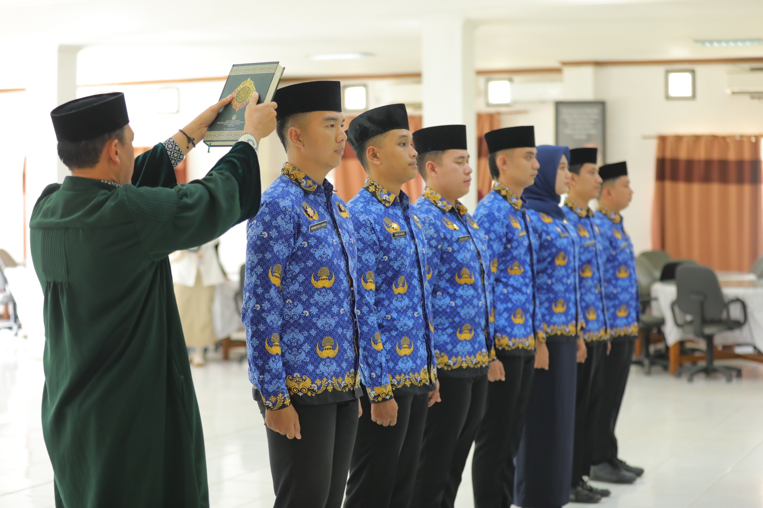 TerabasNews, PANGKALPINANG – Sebanyak tujuh orang lulusan Institut Pemerintahan Dalam Negeri (IPDN) resmi dilantik menjadi Pegawai Negeri Sipil (PNS) di lingkungan Pemerintah Provinsi Kepulauan Bangka Belitung. Pelantikan dan pengambilan sumpah jabatan ini digelar pada Jumat (29/8/2025) di Aula Nata Praja Kantor BKPSDMD Babel.