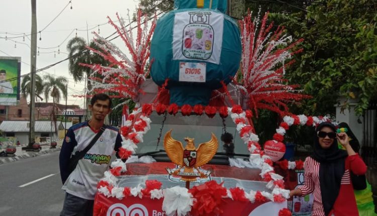 Mobil hias dengan ornamen merah putih itu menjadi simbol ajakan moral kepada masyarakat untuk lebih peduli terhadap kebersihan lingkungan.
