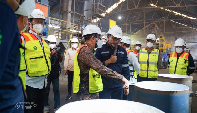 Didampingi Direktur Utama PT Timah Restu Widiyantoro dan Direktur Pengembangan Usaha PT Timah Suhendra Yusuf Ratuprawiranegara melihat langsung proses pemisahan mineral ikutan timah yang dilaksanakan di Amang Plant dan RE(OH) Tanjung Ular.