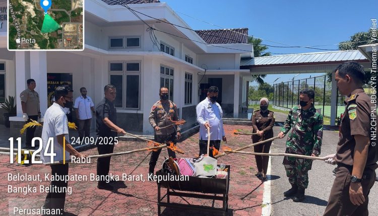 TerabasNews, Kehadiran Kapolres Bangka Barat, AKBP Pradana Aditya Nugraha, S.H., S.I.K., menjadi sorotan dalam kegiatan tersebut. Beliau secara langsung mendampingi jajaran Kejari dalam prosesi pemusnahan dan memberikan perhatian terhadap peningkatan kasus narkotika dan senjata tajam. Rabu 24 September 2025