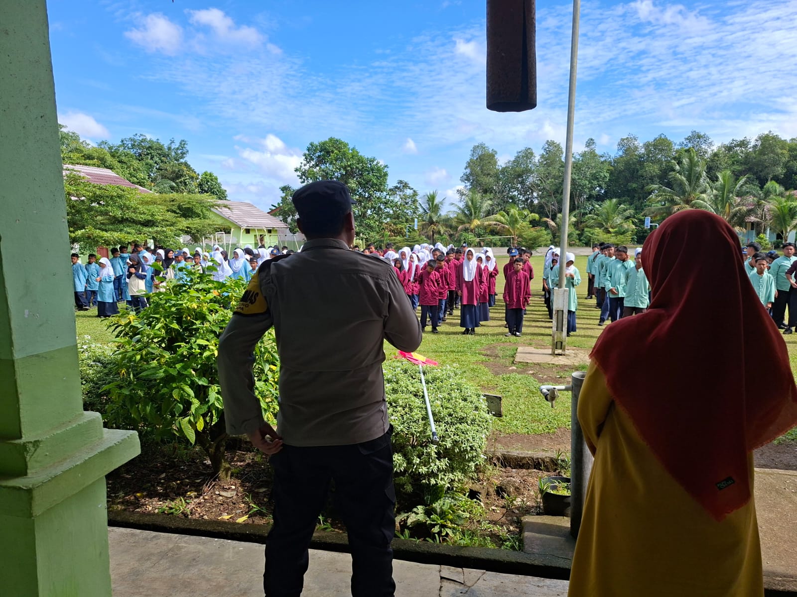 Dalam kegiatan tersebut, Aipda Antop menyampaikan pesan kamtibmas sekaligus mengedukasi siswa tentang pentingnya menjaga sikap dan perilaku di lingkungan sekolah.