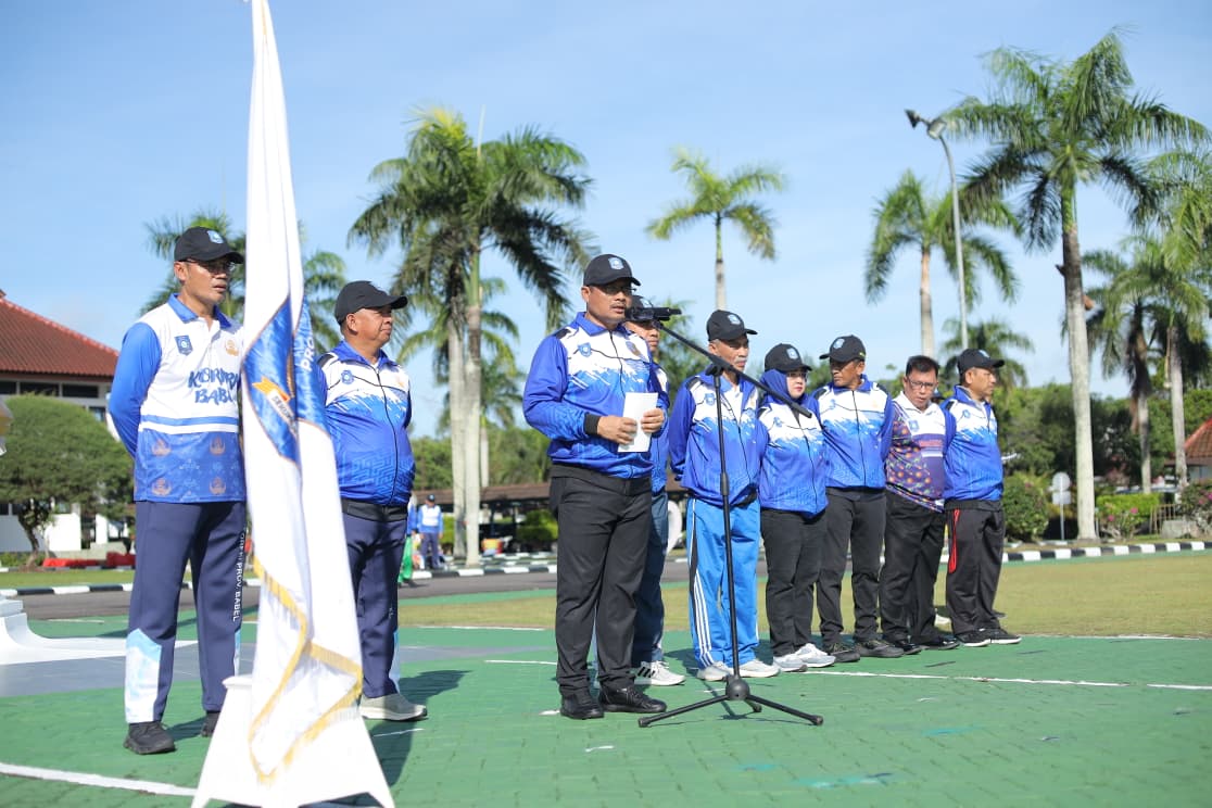 “Jaga rasa kesetiakawanan antar sesama anggota KORPRI, dapat melahirkan atlet KORPRI yang berprestasi, dapat mengharumkan Provinsi Babel, serta menciptakan anggota KORPRI yang sehat untuk mencapai pemerintahan yang sehat,” ujar Pj Sekda membacakan pesan Gubernur Hidayat Arsani, saat melepas kontingen di Halaman Kantor Gubernur Babel, Jumat (3/9/2025).
