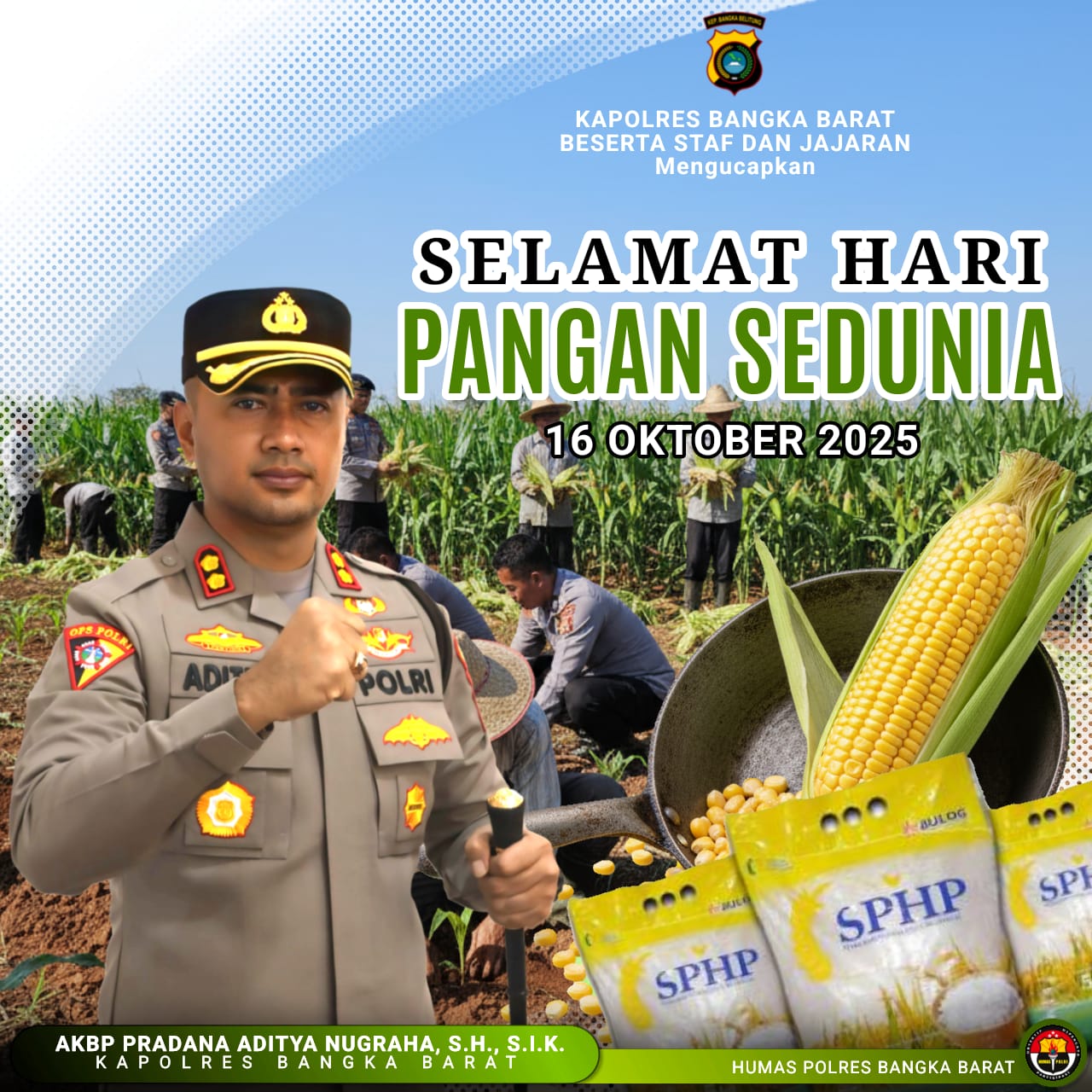 TerabasNews – Dalam rangka memperingati Hari Pangan Sedunia 2025 yang jatuh pada Kamis (16/10/2025), Kapolres Bangka Barat AKBP Pradana Aditya Nugraha, S.H., S.I.K. mengajak seluruh masyarakat untuk lebih peduli terhadap ketahanan pangan sebagai langkah nyata menjaga masa depan bangsa.