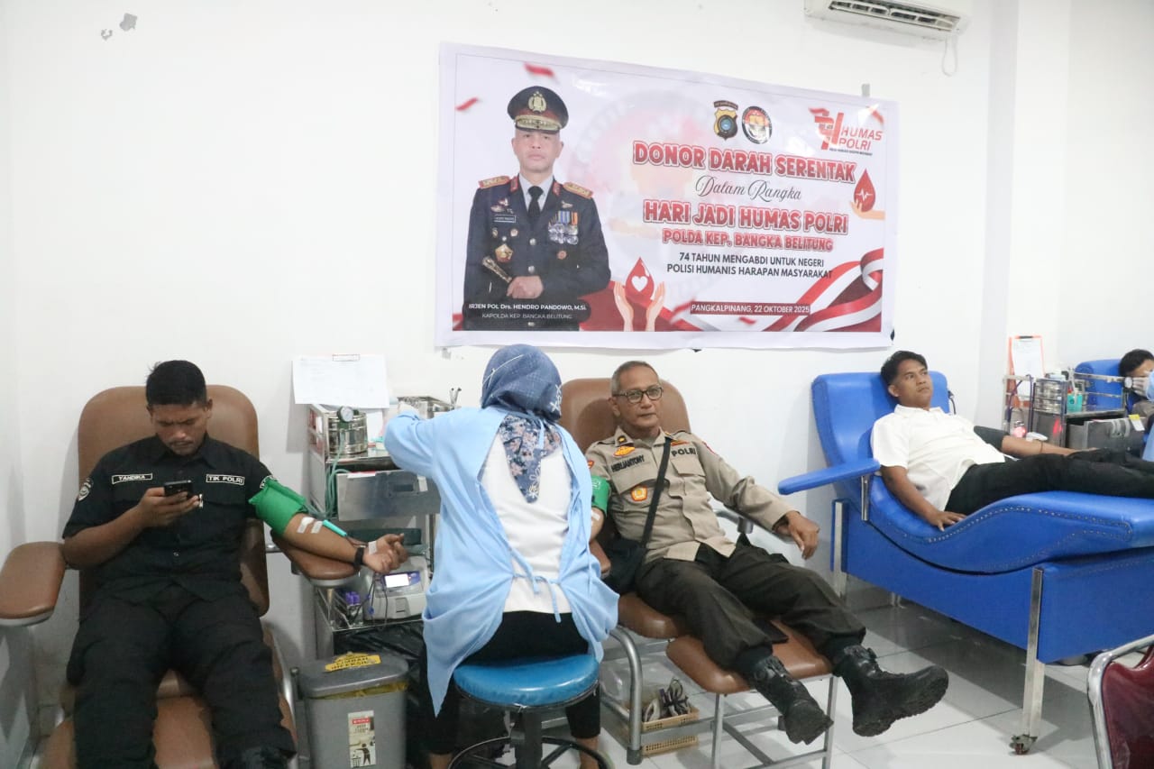 TerabasNews, Bidang Hubungan Masyarakat (Bidhumas) Polda Bangka Belitung menggelar kegiatan donor darah dalam rangka menyambut Hari Jadi Humas Polri ke 74 tahun 2025.