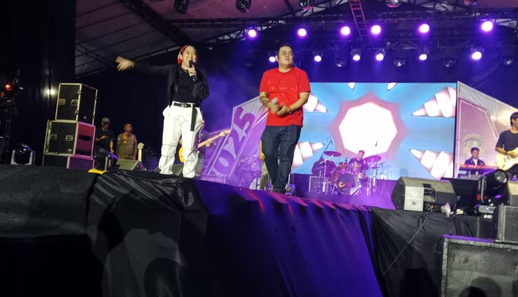 Dalam penampilannya, Bupati yang mengenakan baju kaos merah, membawakan beberapa lagu yang hits bersama group band Aluna.