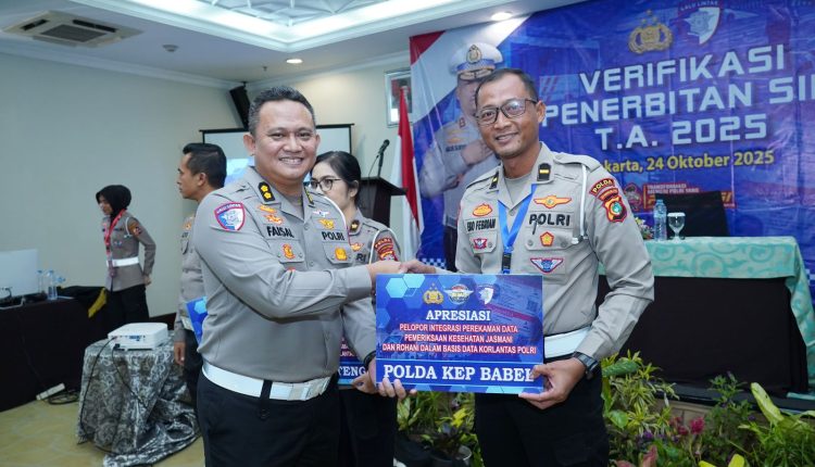 TerabasNews, Pangkalpinang – Direktorat Lalu Lintas Polda Kepulauan Bangka Belitung meraih apresiasi dari Korlantas Polri sebagai salah satu satuan kerja terbaik dalam kategori Pelaporan Integritas Perekam Data Pemeriksaan Kesehatan Jasmani dan Rohani dalam basis data nasional Korlantas Polri, Jumat 24 Oktober 2025.
