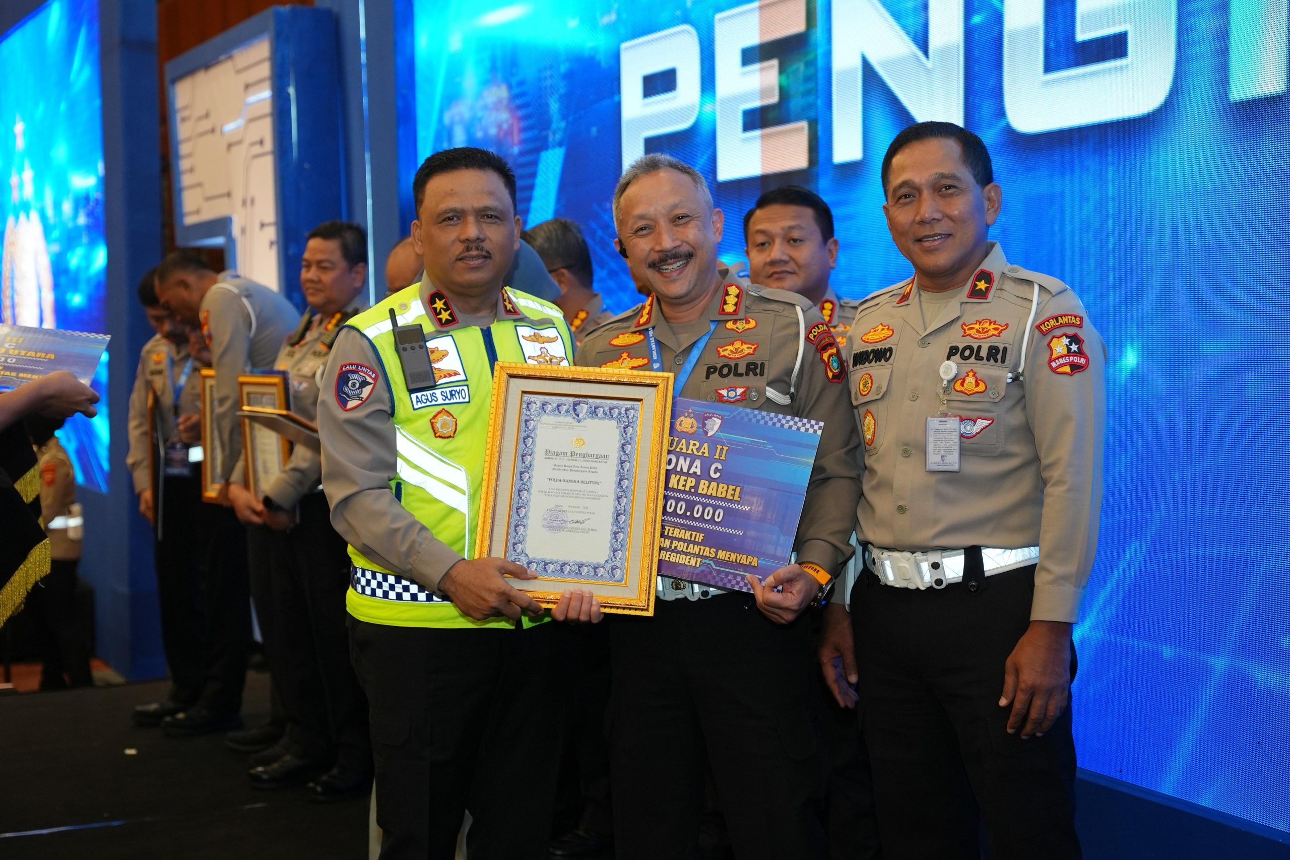 Penghargaan itupun diberikan langsung Kakorlantas Polri Irjen Pol Agus Suryo Nugroho kepada Dirlantas Polda Babel Kombes Pol Pringadhi Supardjan pada rapat evaluasi tugas bidang Regident dan Rakernis Gakkum Korlantas Polri tahun 2025 di Bandung, Jawa Barat.