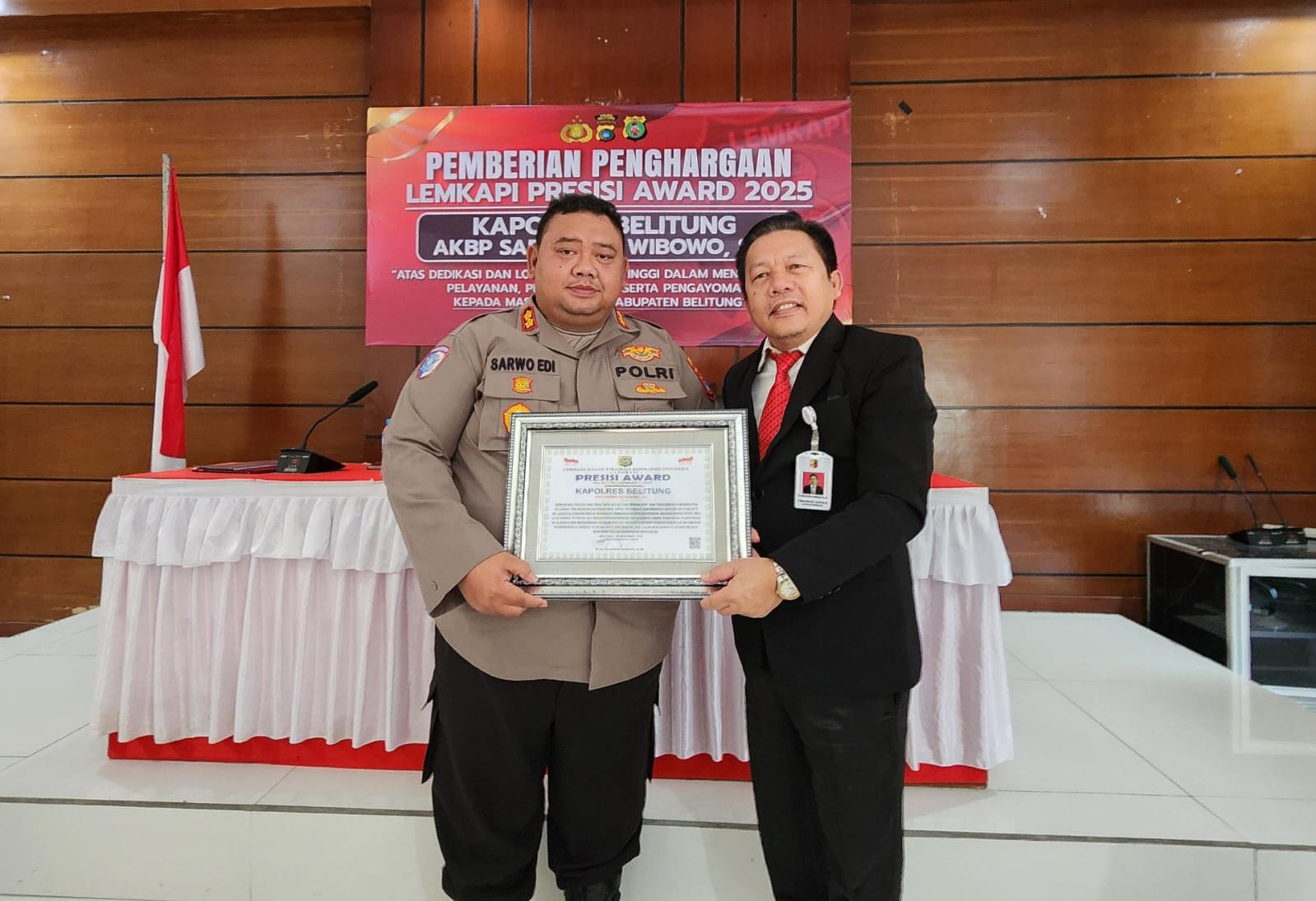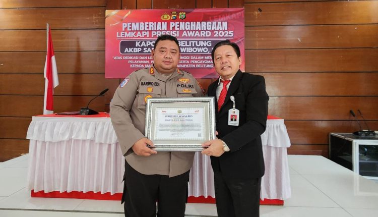 TerabasNews – Kapolres Belitung AKBP Sarwo Edi Wibowo menerima penganugerahan Presisi Awards dari Lembaga Kajian Strategis Kepolisian Indonesia (Lemkapi).