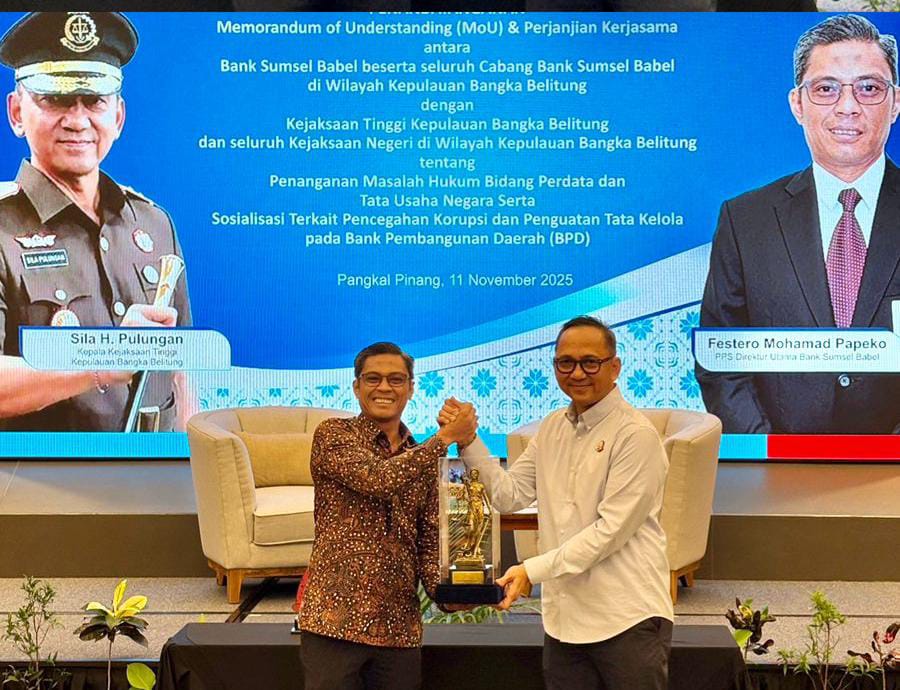 Bank Sumsel Babel bersama seluruh cabang di wilayah Kepulauan Bangka Belitung menandatangani Memorandum of Understanding (MoU) dan Perjanjian Kerja Sama dengan Kejaksaan Tinggi Kepulauan Bangka Belitung serta seluruh Kejaksaan Negeri di wilayah tersebut. Penandatanganan ini menandai komitmen bersama dalam penanganan masalah hukum di bidang perdata dan tata usaha negara, sekaligus memperkuat tata kelola serta pencegahan korupsi di lingkungan Bank Pembangunan Daerah (BPD).