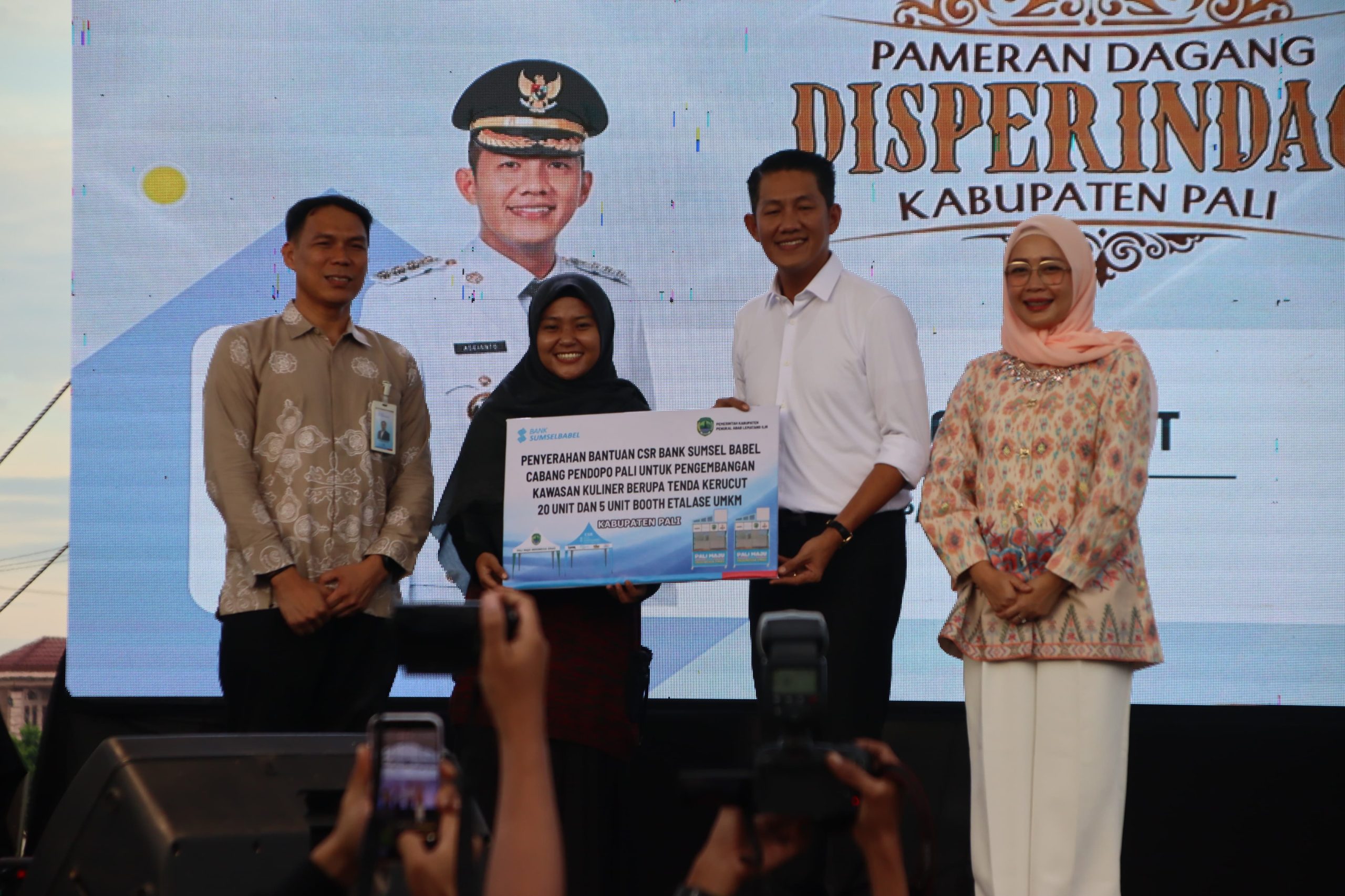 TerabasNews, Pendopo – Bank Sumsel Babel Cabang Pendopo kembali menegaskan komitmennya dalam mendukung pengembangan pelaku Usaha Mikro, Kecil, dan Menengah (UMKM) di Kabupaten Penukal Abab Lematang Ilir (PALI). Komitmen tersebut diwujudkan melalui penyaluran bantuan sarana usaha berupa 20 unit tenda dan 5 unit etalase bagi pedagang yang terlibat dalam agenda ekonomi daerah.