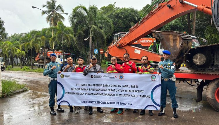 TerabasNews, BANGKA BARAT – PT TIMAH Tbk bekerja sama dengan Pangkalan TNI Angkatan Laut (Lanal) Bangka Belitung mengirimkan bantuan lima unit alat berat jenis excavator untuk mempercepat pemulihan dan pelayanan untuk masyarakat terdampak bencana banjir dan tanah longsoran di Aceh, Sumatera Utara, dan Sumatera Barat.