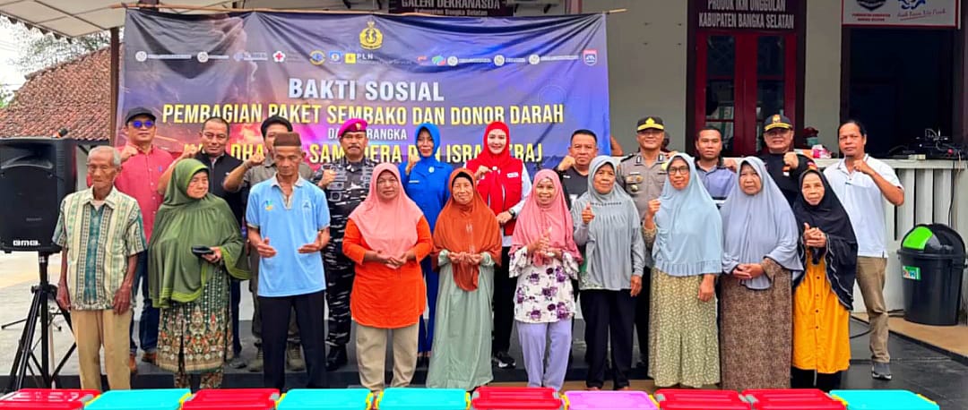 “Alhamdulillah pagi ini kami bersama Danlanal Bangka Belitung dapat menghadiri kegiatan bakti sosial berupa pembagian paket sembako dan donor darah dalam rangka Hari Dharma Samudra serta Isra Mi’raj 1447 H/2026 M di Kantor PMI Kawasan Simpang Lima Toboali,” ujar Debby.